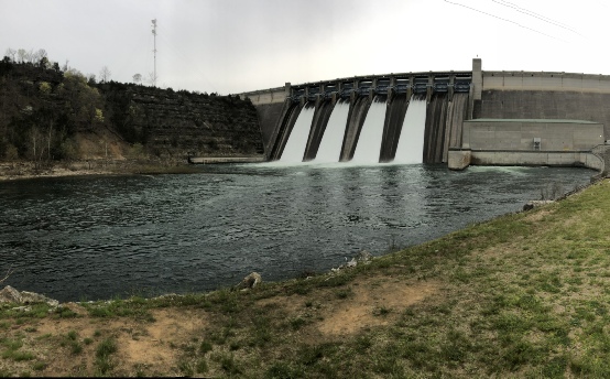 Susan Skorburg Chief of Programs toured Table Rock Lake and Dam. Damming White River met several goals: flood control, hydro-